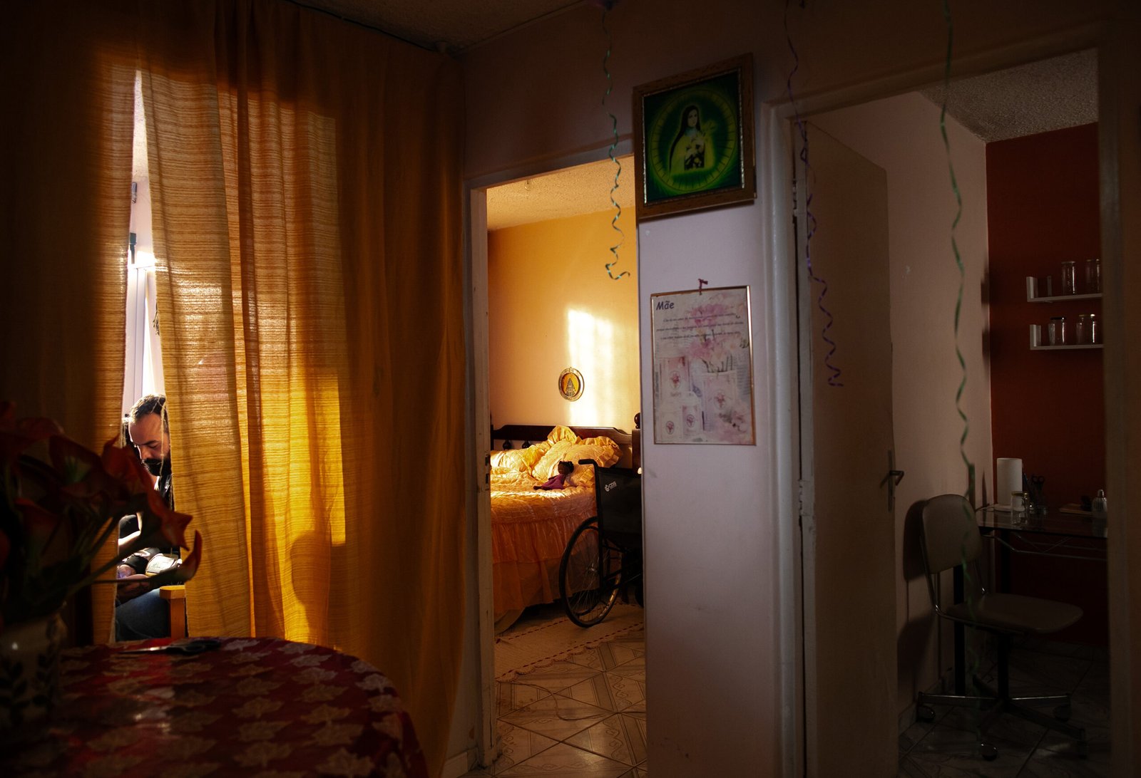 Sinopse: No silêncio de um apartamento modesto, a luz do amanhecer desenha sombras nas paredes enquanto Salomé, uma mulher de 50 anos, cuida de sua mãe, Tereza, uma idosa cujo temperamento oscila entre a fragilidade e o autoritarismo. O som da chaleira no fogão, o arrastar lento dos pés de Tereza pelo corredor e o murmúrio distante de um rádio antigo preenchem o espaço com uma melancolia quase palpável. Enquanto os dias se repetem, Salomé se vê prisioneira de uma rotina de cuidados e humilhações, tentando equilibrar o peso de uma relação marcada por silêncios e ressentimentos. Em meio a essa convivência sufocante, Salomé captura um escorpião no apartamento, que se torna uma presença discreta, mas ameaçadora, refletindo as tensões reprimidas entre mãe e filha. À medida que o som dos passos e das respirações se tornam mais pesados, Salomé se vê diante de um gesto irreversível.
